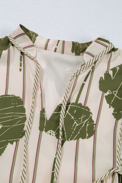 Printed Tie Neck Three-Quarter Sleeve Mini Dress